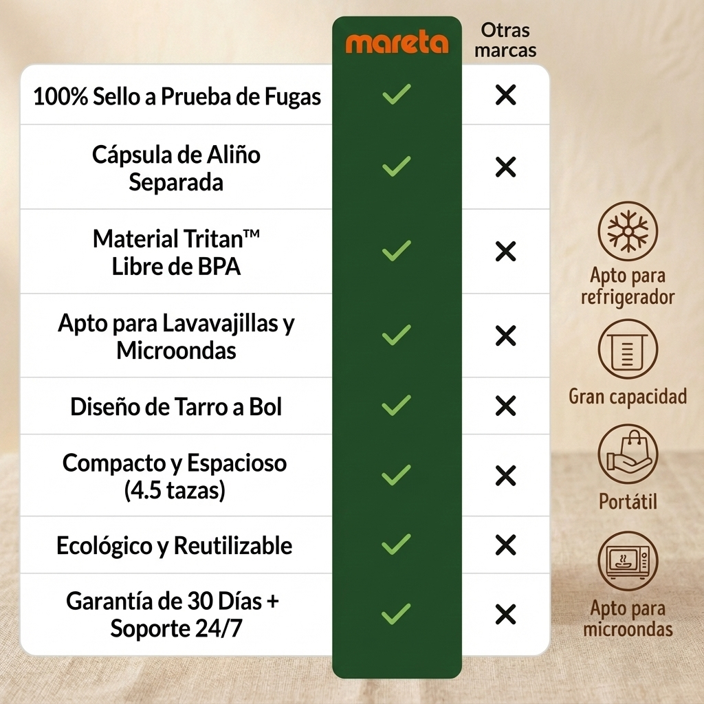Mareta BOWL nace para quienes viven a otro ritmo. Lleva tu comida como quieres: fresca, crujiente y lista en segundos. Un diseño pensado para moverse contigo—sin fugas, sin líos y sin renunciar a lo bueno. Mezcla, sirve y disfruta donde estés. Tu alimentación, elevada. Tu día, más fácil.